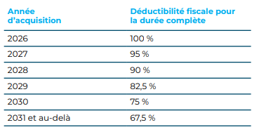 Le taux de déductibilité minimum de 50% ou de 40% sera, quant à lui, supprimé dès l’exercice d’imposition 2026.