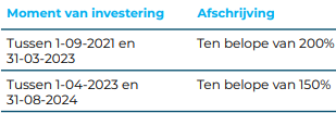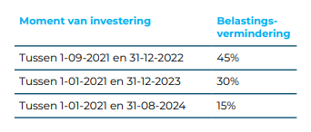 - Er mag voor de uitgaven van hetzelfde laadstation geen investeringsaftrek worden toegepast.